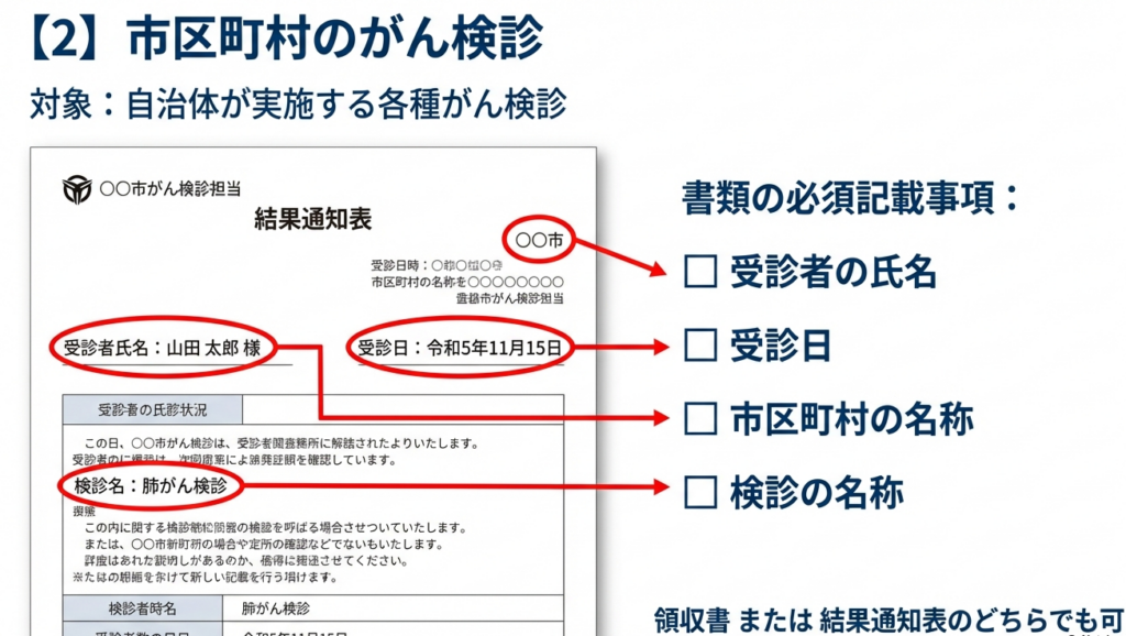 5. 人間ドックやがん検診をはじめとする各種健診(検診)の領収書または結果通知表
