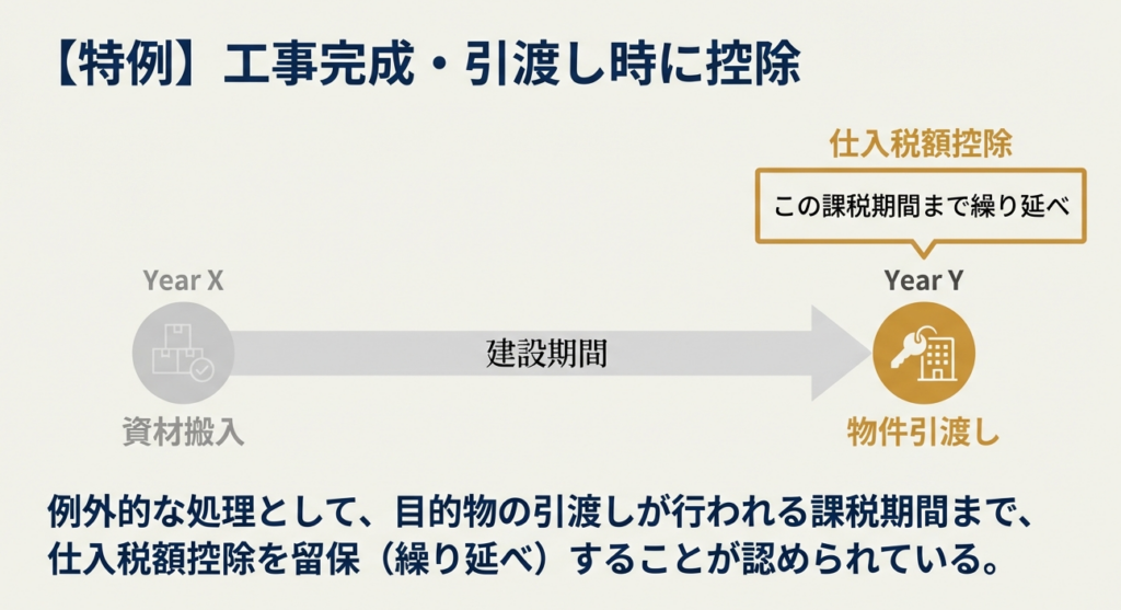 3.2. 例外:工事完成・引渡しの課税期間に一括で控除