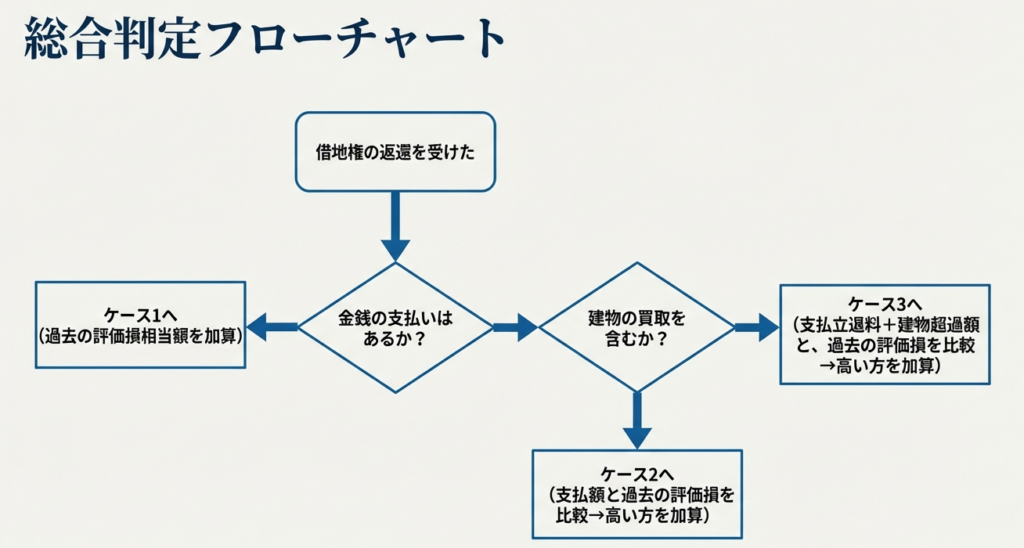 貸地の返還といっても、その具体的な状況は様々です。立退料の支払いの有無や、土地上の建物の取り扱いによって、会計処理は異なります。ここでは、国税庁の指針に基づき、主要な3つのケースと実務上の重要ポイントを正確に理解していきましょう。