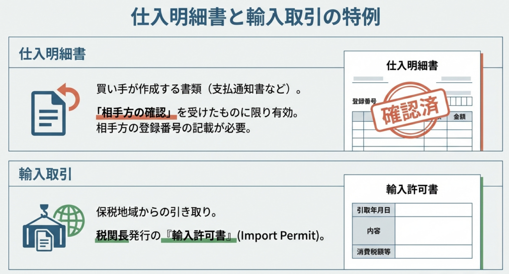 この2つの要件は、原則としてセットで求められます。どちらか一方だけでは、仕入税額控除は認められません。