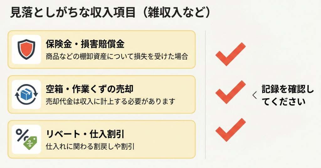 以下の項目が総収入金額に含まれることを再確認してください。