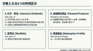 • その他:非営業用貸金の利子や、上記に当てはまらない単発の所得。