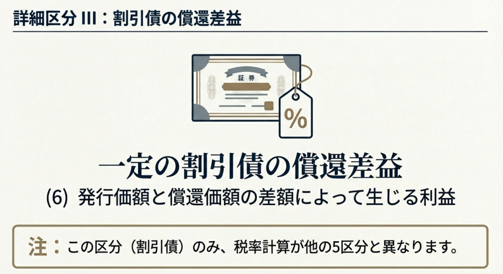 10. 割引債の償還差益に対する源泉徴収税率は、他の対象所得とどのように異なりますか?