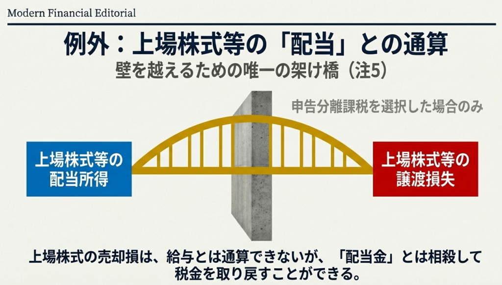 原則として分離課税の損失は他と通算できませんが、投資家保護の観点から以下の特例が認められています。