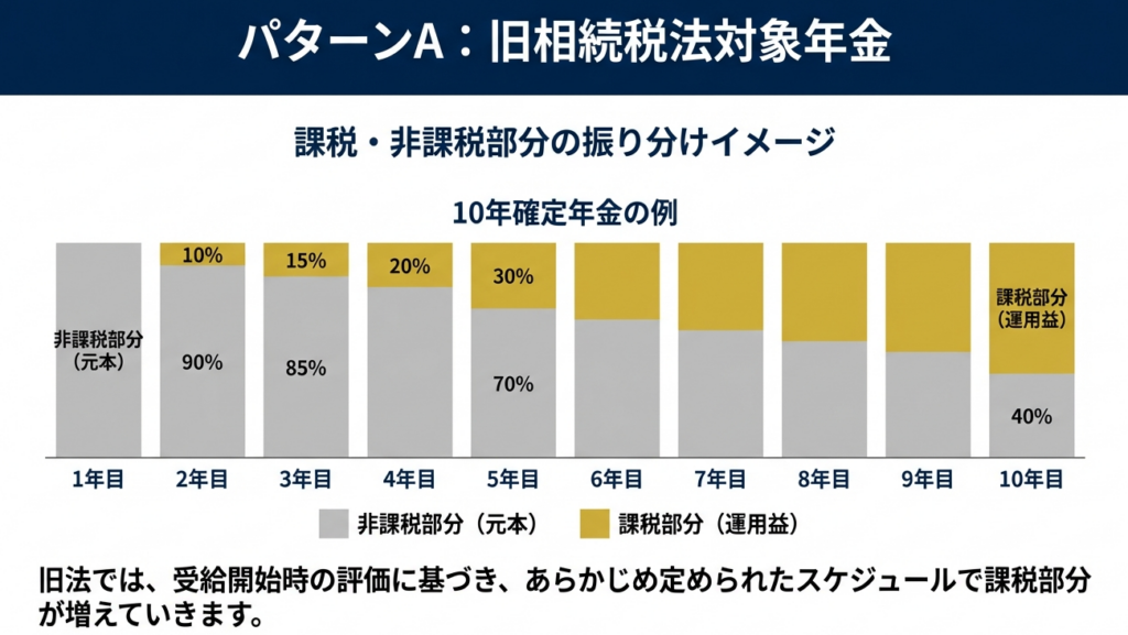 問10: 「旧相続税法対象年金」と「新相続税法対象年金」の区別は、どのような基準で行われますか。