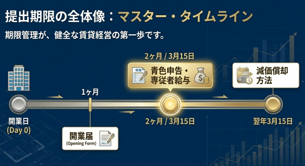 以下に、実務で扱う主要な届出書の期限と戦略的意義をまとめました。