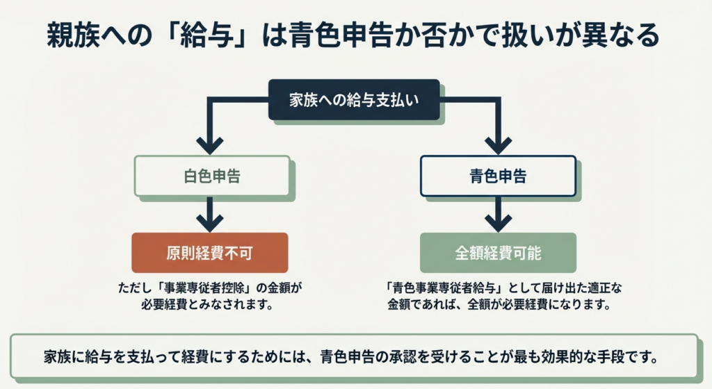 支払額そのものは経費になりませんが、一定の要件を満たせば「事業専従者控除」の適用が可能です。