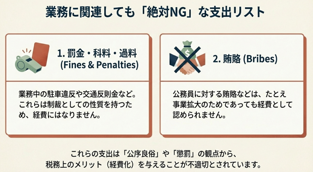 法令違反への制裁に税制上の優遇(経費算入)を与えることは社会正義に反するため、認められません。