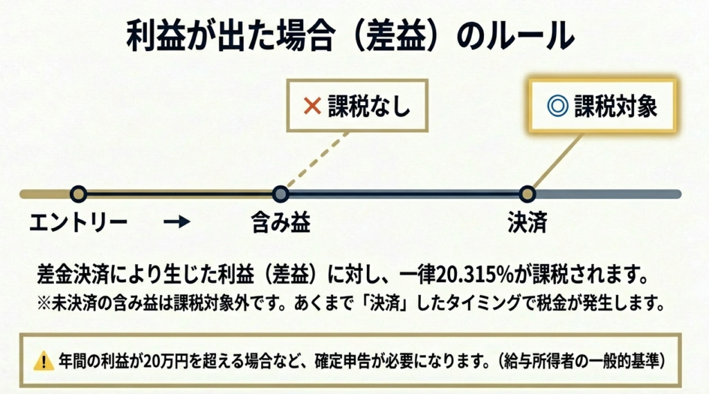 「先物取引に係る雑所得等」として扱われ、他の所得と区分して計算する申告分離課税の対象となります。これは平成24年1月1日以降の取引に適用されるルールです。