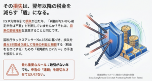 「FXの利益は一律20.315%の申告分離課税であり、給与とは合算できませんが、損失は確定申告をすることで3年間繰り越すことが可能です」
