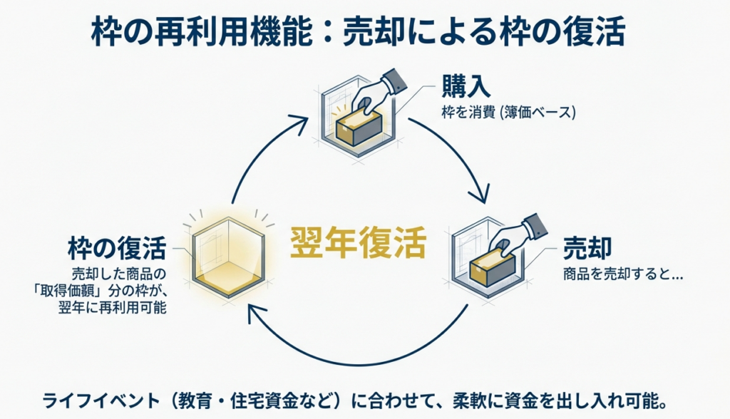 このように、年間最大360万円まで、生涯で1,800万円までの投資が可能となっています。