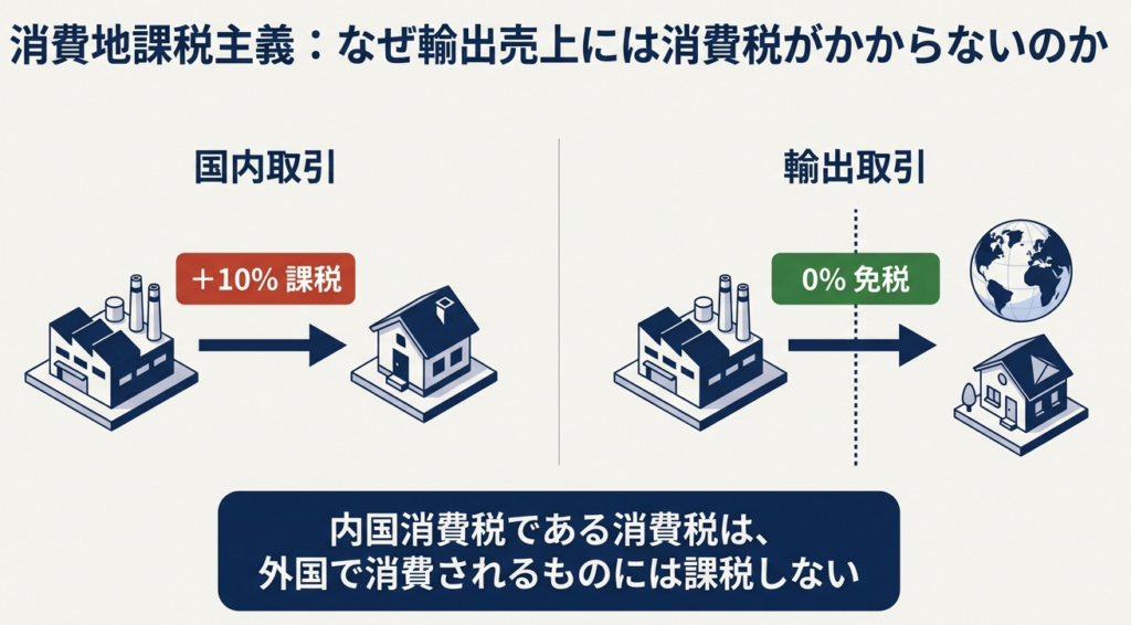 消費税は「内国消費税」であり、日本国内で消費されるものに課税するという考え方に基づいています。そのため、外国で消費されることが予定されている輸出取引については、消費税を免除することとされています。