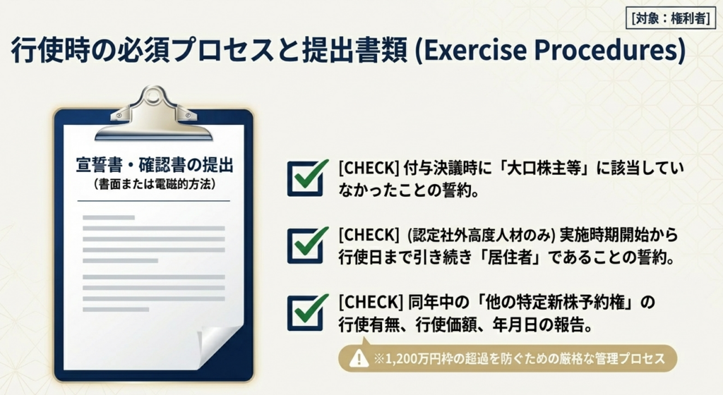 手続きと義務 制度の適用を受ける権利者は、自身が大口株主に該当しない旨の誓約書等を会社へ提出する必要があります。