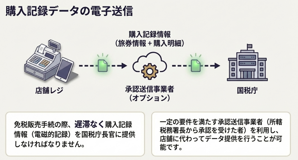 購入者の情報および販売事実を記録した電磁的記録を、「遅滞なく」国税庁長官に送信します。- 戦略的アドバイス: