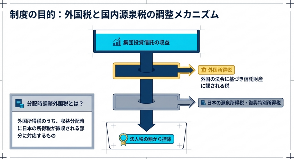 国際的な分散投資が一般化した現在、法人が投資信託(集団投資信託)を通じて海外資産を運用するケースは珍しくありません。実務担当者がこの収益分配を受け取る際、単なる「国内源泉所得税の控除」として片付けてはならないのが、本制度「分配時調整外国税相当額控除」です。