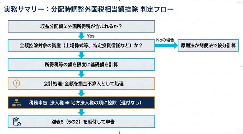 本制度を正確に運用するには、「分配時調整外国税」の定義を厳密に理解し、対象となる信託の種類に応じた計算手法を選択する必要があります。