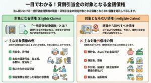 | 貸倒れ | 金銭債権が回収不能となり、資産価値が失われること。税務上、一定の要件を満たせば損金に算入できる。 |