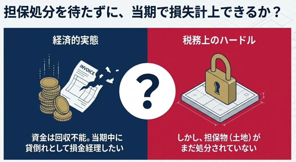 計上時期の判断を誤ることは、単なる事務過誤では済みません。計上が遅れれば「事実上の課税繰延べ」とみなされ、逆に早すぎれば「損金不算入」として更正を受け、多額の追徴税額が発生するリスクを孕んでいます。特に担保物件が存在する場合、多くの実務担当者は「担保を完全に処分し終えるまでは損失計上できない」という原則論に縛られがちですが、この硬直的な判断が適正な決算を阻害し、結果として企業の税務リスクを高めてしまうことがあります。