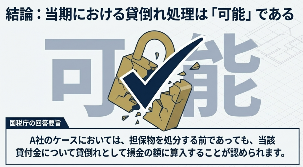 第3問: 劣後抵当権が設定されている場合、担保物の処分前に貸倒処理を行うことは可能ですか。