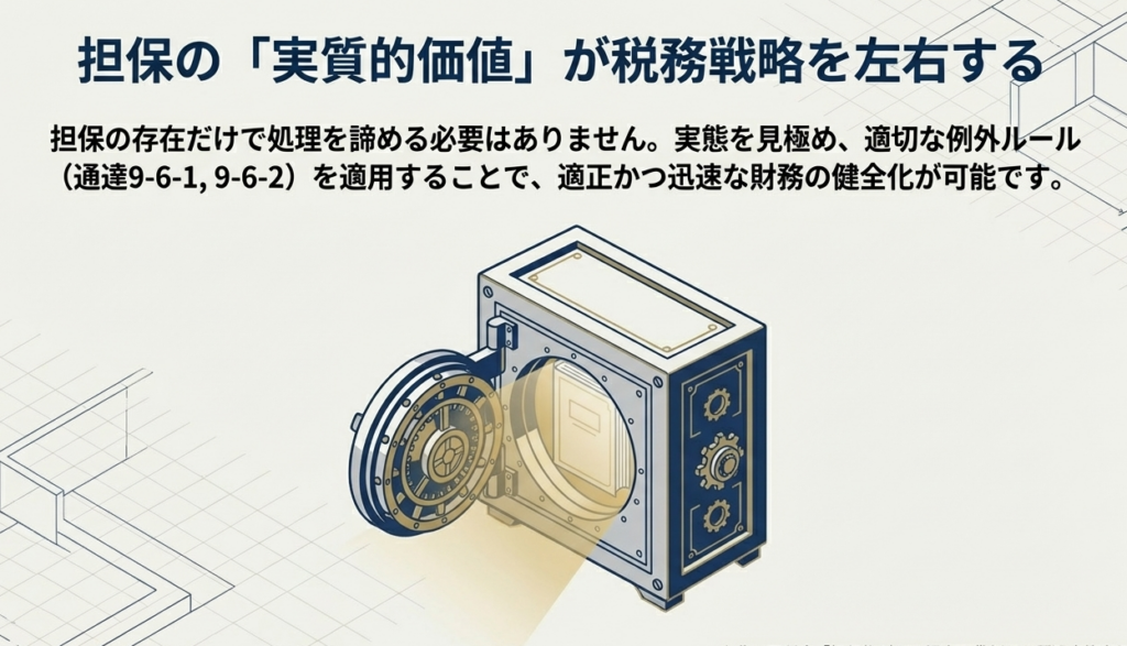 本資料では、担保権が設定されている状況下であっても、特定の条件を満たせば「担保処分前」に貸倒れが認められる実務的な判断基準を、国税庁の最新の質疑応答事例に基づき解説します。