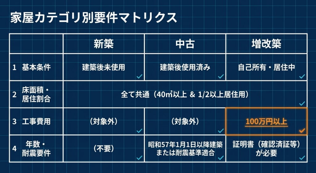 項目新築・取得の場合の要件増改築等の場合の要件