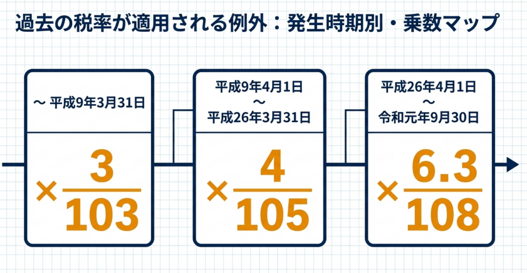 | 平成9年3月31日まで | 回収額 × 3 / 103 | 旧税率(3%) |