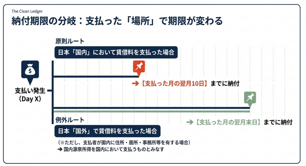 5. 実務手続:納付期限の判定と国外支払の「みなし」規定