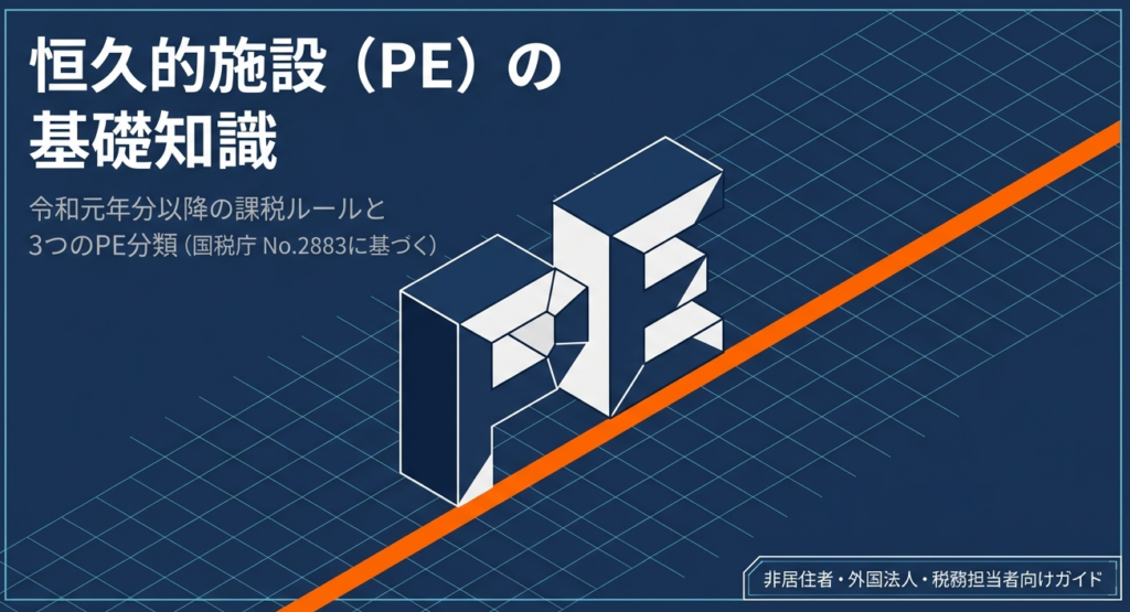 非居住者や外国法人に対する課税において、重要な基準となるのが「恒久的施設(PE: Permanent Establishment)」です。同じ国内源泉所得であっても、PEの有無やその所得がPEに帰せられるか否かによって、総合課税になるか源泉分離課税になるかといった課税関係が大きく異なります。