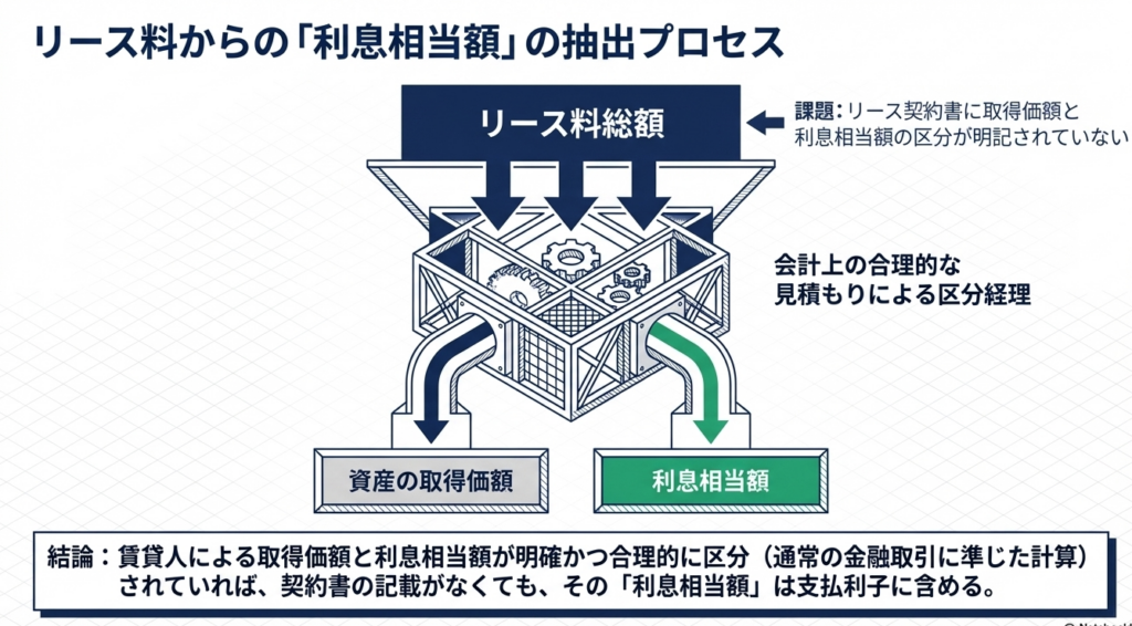 5. リース契約書に利息相当額の区分が明記されていない場合、利息相当額を支払利子に含めることは可能ですか。