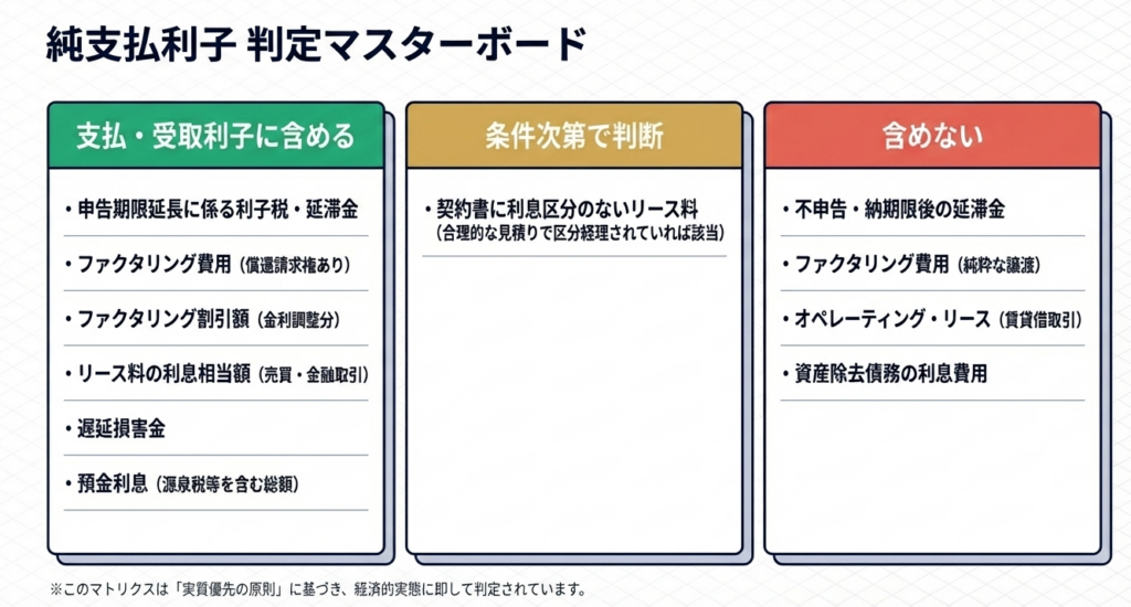 2. 結論:主要項目における「支払利子・受取利子」の該当性一覧