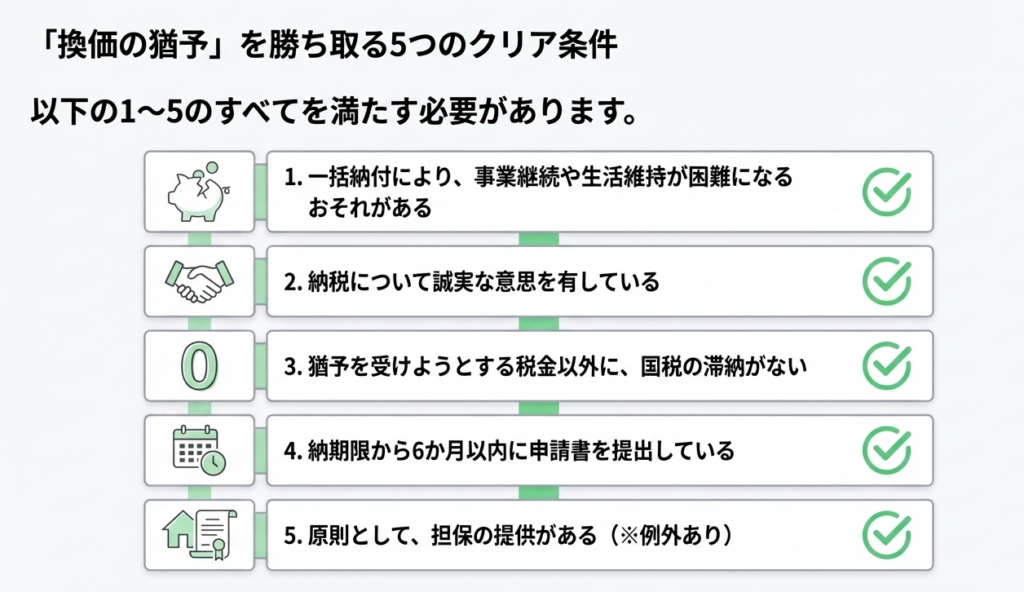 3.1 申請による「換価の猶予」:5つの要件