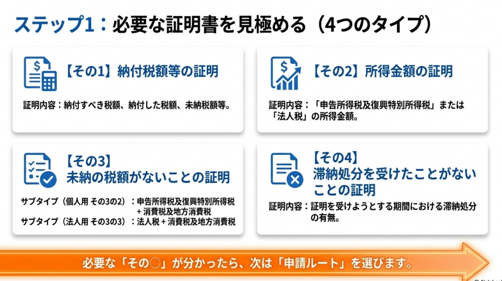 3. 詳細解説:納税証明書の種類と交付請求の仕組み