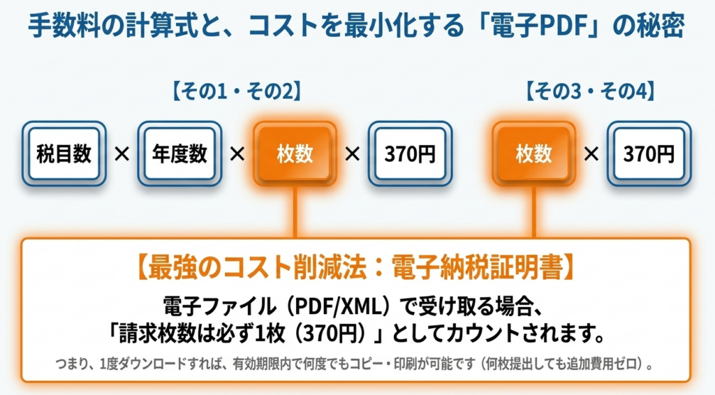 窓口への移動時間を削減できるだけでなく、電子納税証明書(PDF/XML)として受け取れば、有効期間内であれば何度でも再利用が可能です。これにより、提出先ごとに複数枚を請求・管理する手間とコストが完全に排除されます。