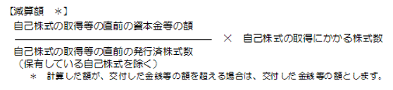 減算額 = (取得直前の資本金等の額 ÷ 取得直前の発行済株式数(保有する自己株式を除く)) × 取得株式数