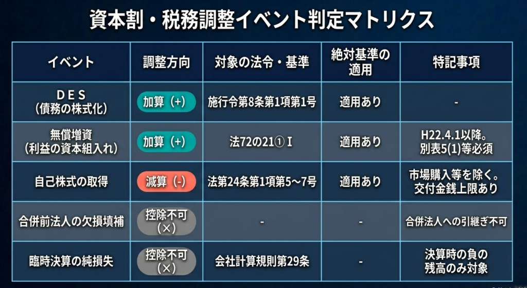 解説:外形標準課税の資本割の調整(無償増減資・自己株式等)