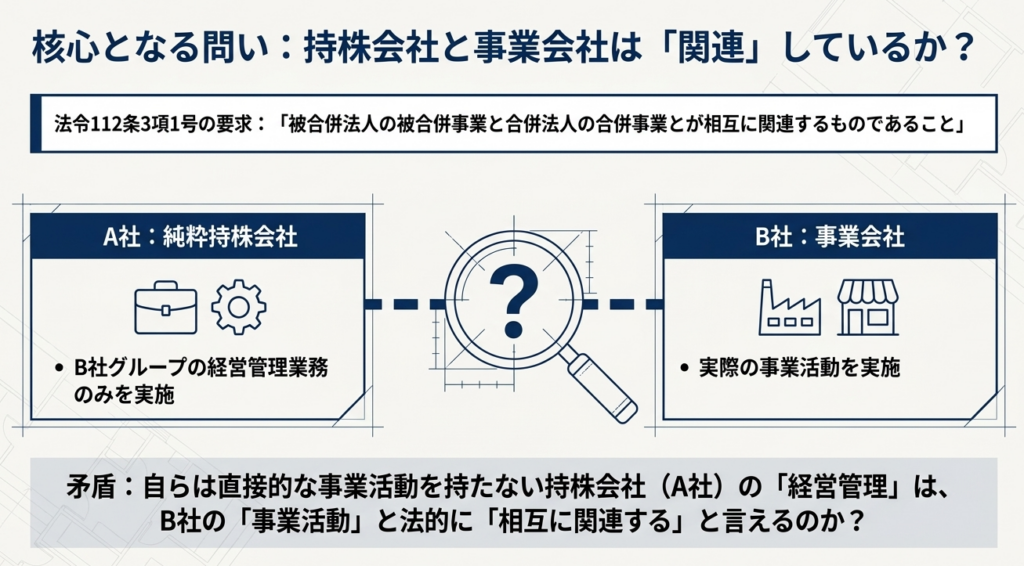解説:持株会社と事業会社が合併する場合の「事業関連性要件」