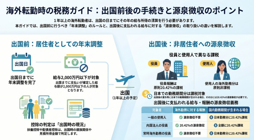 本記事では、出国前の「最後の精算」と、出国後の「特殊な課税関係」を整理し、現場レベルで即応できるアクションプランを提示します。
