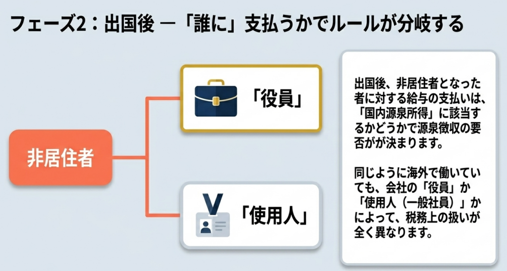 出国後に支払われる給与等の扱いは、役員と使用人で異なります。