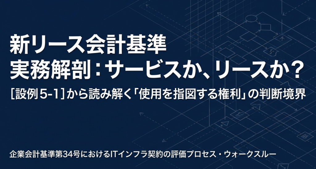 特に「資産の使用を支配する権利」の検討、その中でも「指図権」の有無の判断は、多くのITサービス契約やアウトソーシング契約において「サービスかリースか」の境界線を画定する極めて重要なステップです。