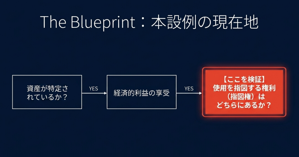 本来、リースの識別には「資産の特定」と「支配の移転」の双方が必要ですが、本設例では「指図権の欠如」が明白であるため、ASBJの解説においても「資産が特定されているか否か」の判断を待たずに、リースに該当しないという結論が導かれています。