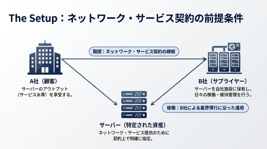 ・契約内容: A社(顧客)は、B社(サプライヤー)から2年間にわたりネットワーク・サービスを利用する契約を締結した。