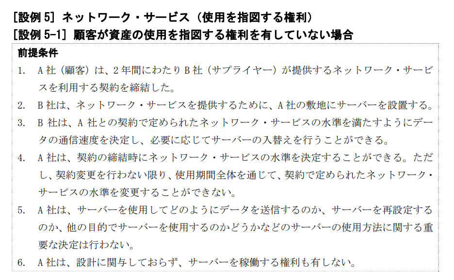 設例5-1は、ネットワーク・サービス契約において、顧客が「資産(サーバー)の使用を指図する権利」を有しているかを判定するケースです。