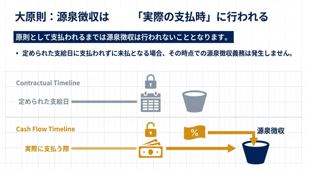 源泉徴収制度の根幹は、所得税法第183条が規定する「支払主義」にあります。これを理解することが、実務の混乱を防ぐ第一歩です。